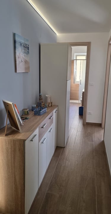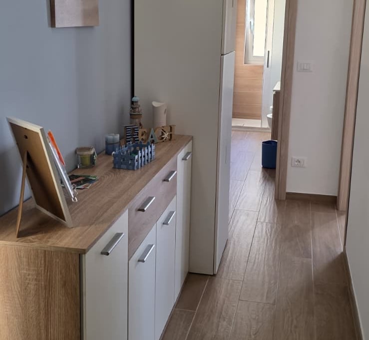 Entrata dell'appartamento dalla quale si accede al primo bagno adiacente al soggiorno.