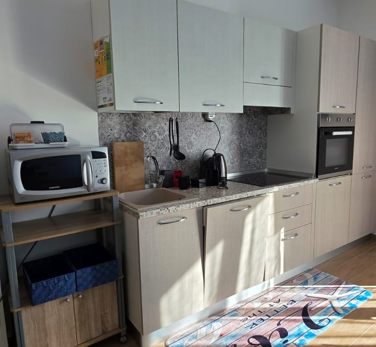 Cucina completa di tutti gli elettrodomestici (frigo, forno, lavastoviglie, microonde) e di tutti gli utensili per cucinare. Completa la dotazione una macchina da caffè Nespresso e un bollitore.